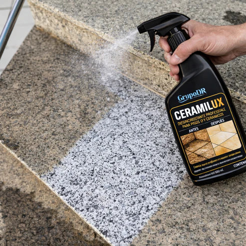 CERAMILUX™ es un spray limpiador profundo que actúa al momento sobre pisos y azulejos, desprendiendo la suciedad más pegada sin dañar la superficie y sin esfuerzo.